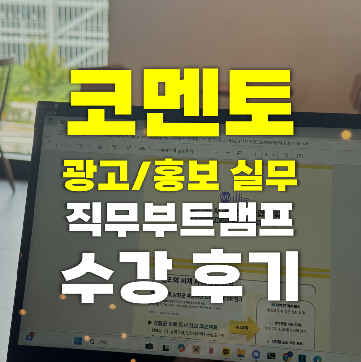 직무부트캠프를 통해 어느 회사에나 기본적으로 갖추고 있는 홍보팀의 다양한 업무를 경험하고, 실질적으로 취직 준비를 하며 개별 공고가 떴을 때 과제에서 배웠던 것을 바로 활용해서 활용할 수 있게 도와드리고 싶었습니다. (홍보, 광고 등 개별 직무가 아닌 "홍보팀"으로 뽑는다면 4가지를 모두 다 다룰 줄 아니 더욱 어필할 수 있는게 많을거라 생각합니다.)