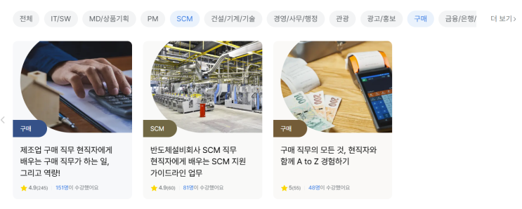 5주 간의 직무부트캠프를 하시면서 조달구매부터 전략구매까지 모두 경험하시게 하실텐데, 구매는 단순 관리 업무가 아니라 끊임없이 탐구하고, 전략을 세우는 어려운 업무지만 업무를 하면서 성취감도 높고 성과 지표도 뚜렷한 직무입니다.