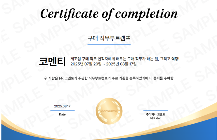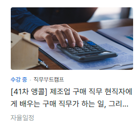 5주 간의 캠프가 끝나고 나면, 적어도 자기소개서에 '무슨 일을 하는 직무인가'라는 고민을 들지 않도록 도움이 될 것입니다. 구매 직무에 흥미가 있거나 구매 담당자가 되고 싶으신 분들이라면, 함께 5주 간 캠프에 참여해보시지 않으시겠어요?