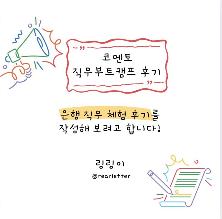 제가 면접때 마주했던 과제들이나, 실무에서 어려웠던 직무들을 여러분과 함께 공유하여 은행권에 대해 조금이나마 파악할 수 있는 시간이 되었으면 해요. 곧 만날 수 있으면 좋겠습니다:)