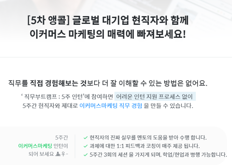 5주간 현직자와 제대로 이커머스마케팅 직무 경험을 만들 수 있습니다.