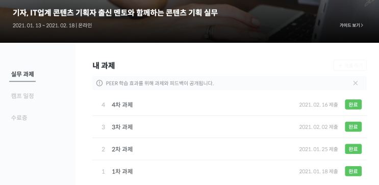 주차 별 업무를 기한 내 제출하지 않은 분들은 개별 업무 피드백을 받을 수 없습니다.