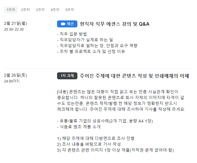 5주간 현직자와 제대로 기자 직무 경험을 만들 수 있습니다.