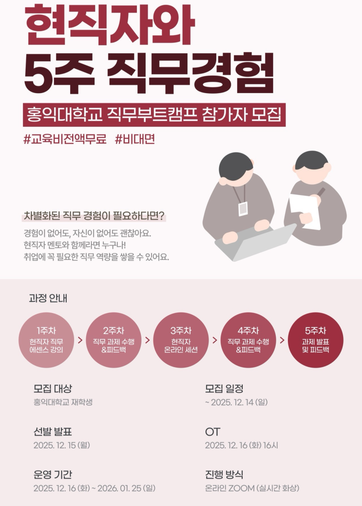 업무는 모두 개인업무로 진행되며, 업무 수행과 학업 및 취업준비의 병행이 가능합니다.(1주 평균 2~3시간 소요)
