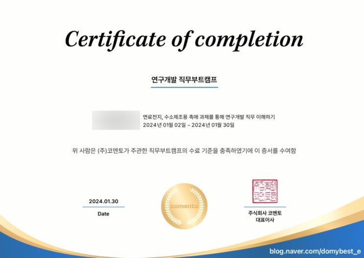 수료증을 토대로 이력서에 직무 관련 경험으로 작성했고 임원 면접시 경험에 대한 질문에 직무 관련한 관심이 많다는 것으로 어필 했고, 좋은 평가를 받을 수 있었어요.