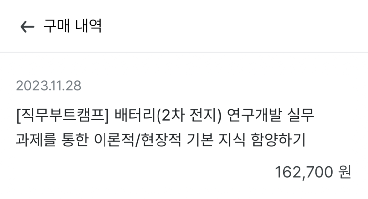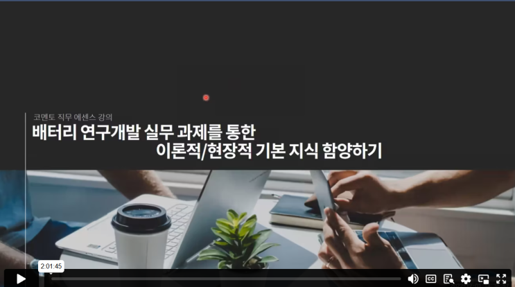 본 직무부트캠프의 최종 목표는 배터리 연구 개발 직무 수행에 필요한 전문적 지식 함양, 아이디어 도출 방법과 보고용 서류/장표 작성 방법 숙달, 그리고 의사소통 및 프리젠테이션 능력을 향상 시키는 것이며, 본 멘토는 최선을 다해서 높은 연구개발 직무의 장벽을 확실히 낮추어 드릴 수 있도록 노력하겠습니다.