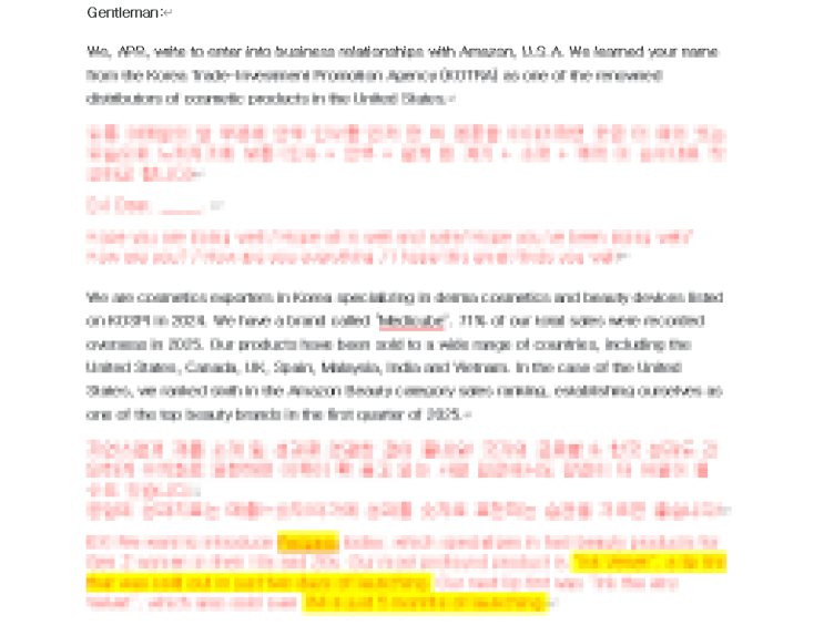 본인이 선택한 브랜드로 신규 바이어에게 처음 보내는 영업 메일을 작성할 예정입니다.