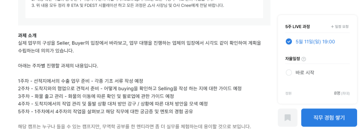 5주간 현직자와 제대로 무역 직무 경험을 만들 수 있습니다.