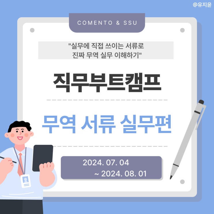 이러한 5주간의 캠프를 통해 중소기업에서의 무역업무란 이렇게 진행된다는 것을 체득하실수 있습니다. 실제 사용하는 서류들을 작성하고 분석해보면 무역실무에 대한 이해도가 크게 높아집니다. 회사에 지원할때도 구체적으로 채용 공고를 분석하실 수 있으며, 해당 회사는 어떤 업무를 하는 사람을 채용할 예정인지에 맞추어 지원서와 면접 방향을 올바르게 설정하실 수 있습니다. 최대한 여러분을 도울 준비가 있는 저와 함께 5주간 많은 정보를 얻어가셨으면 좋겠습니다.