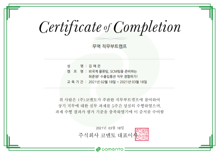 채용지원 마감일과 캠프 종료일 차이로 수료증 활용이 어려운 경우, 수료예정증명서를 발급해드립니다.
