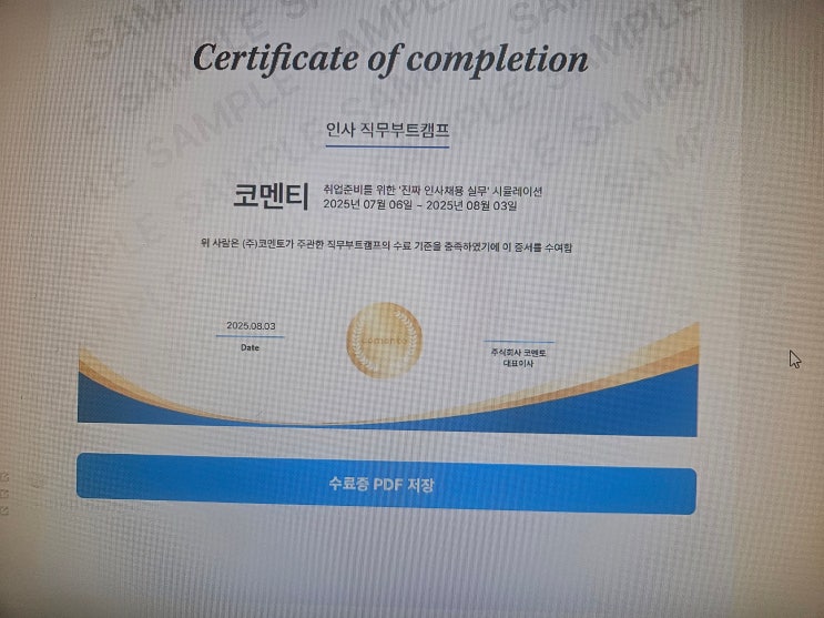 채용지원 마감일과 캠프 종료일 차이로 수료증 활용이 어려운 경우, 수료예정증명서를 발급해드립니다.
