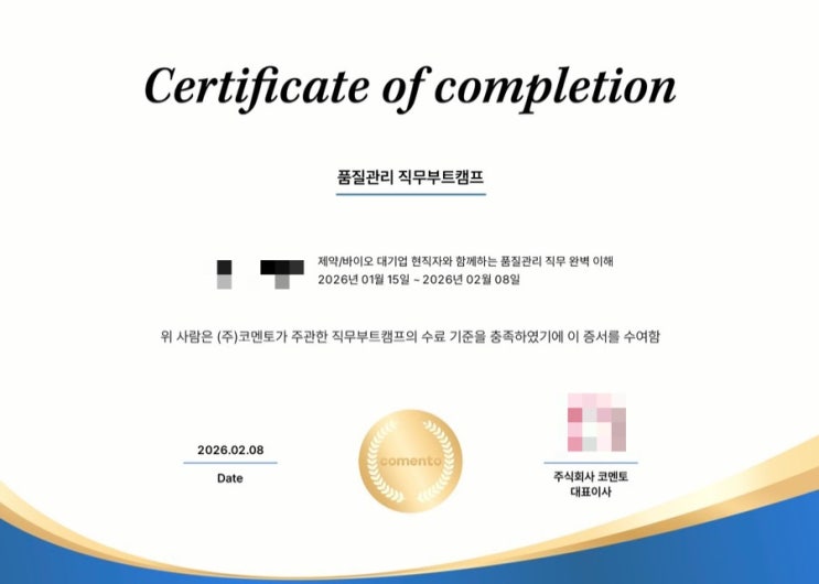 바이오/제약회사의 품질부문을 비롯해 제조 공정 까지 전반적인 개념 및 문서적인 실무를 진행하게 됩니다.