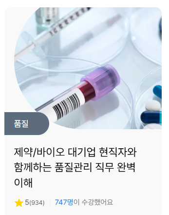 현재 반도체와 자동차 산업과는 다르게, "제약/바이오"산업에서 관련된 심도있는 직무강의는 존재하지 않습니다.