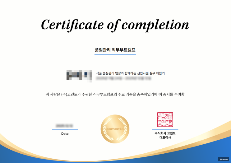 현직자 강의 1회 수강 + 업무 제출 3회 수행시, 교육 수료증이 발급됩니다.