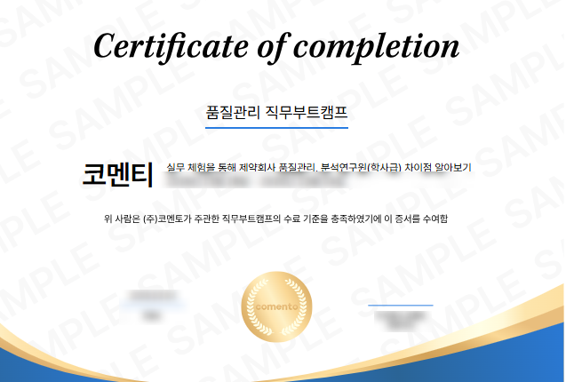 현직자 강의 1회 수강 + 업무 제출 3회 수행시, 교육 수료증이 발급됩니다.