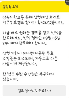 캠프 시작전 취소(D-2일까지): 쿠폰 재사용 가능
