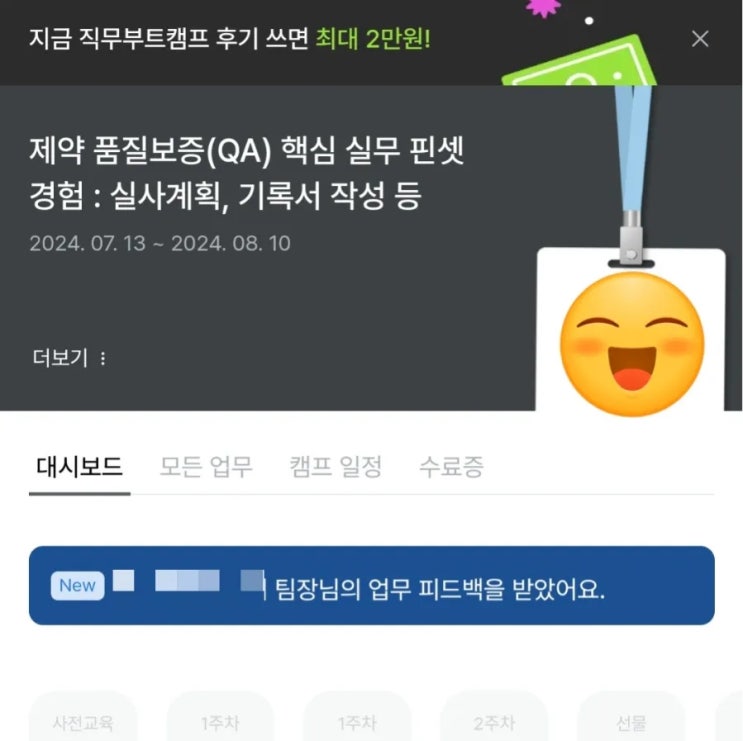 업무에 대한 1:1 피드백과 코칭이 매주 제공됩니다.