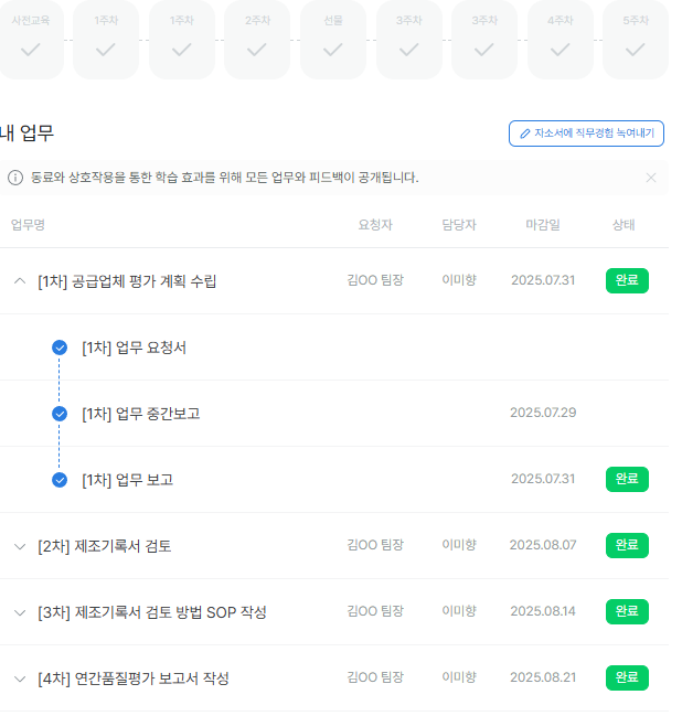 저와 5주간 함께 수행한 업무는 직무경험을 증명할 결과물이 됩니다.