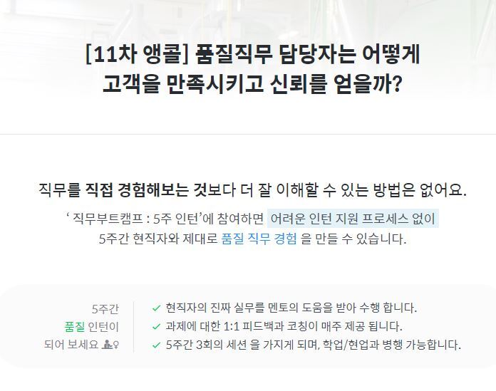 5주간 현직자와 제대로 품질 직무 경험을 만들 수 있습니다.
