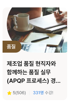 품질관리가 어떤 업무를 하는지 간접적으로 체험하기 위해서, 품질 관련 기법 자격증인 6 시그마도 이수하였지만, 간접 체험하기에는 너무 거리가 멀었고 정작 현업에서는 큰 도움이 되지 못했었습니다.