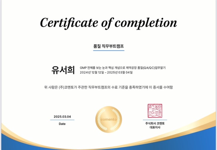 안녕하십니까? 23년 이상 의약품 GMP 업무를 하고 있는 멘토입니다.