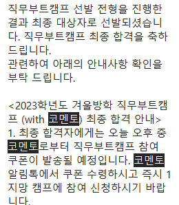 1주차 시작일 D-1 ~ 캠프 종료일: 쿠폰 재사용 불가