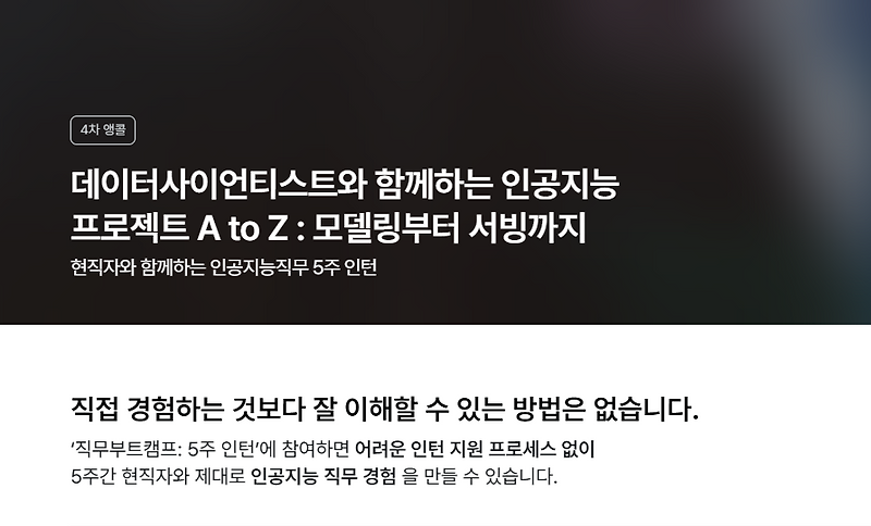 5주간 현직자와 제대로 인공지능 직무 경험을 만들 수 있습니다.