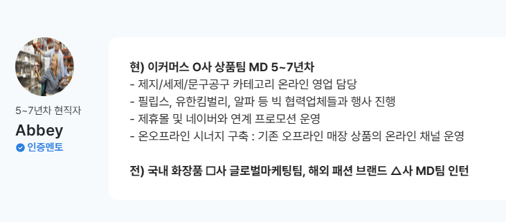 현) 이커머스 O사 상품팀 MD 5~7년차