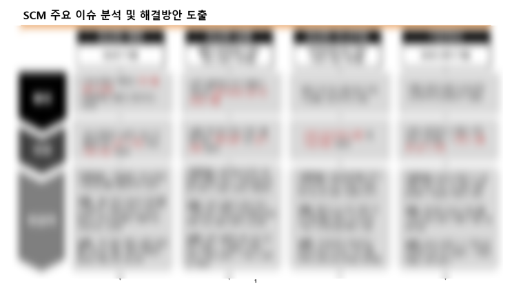 SCM 프로세스 상에서 발생하는 주요 이슈들을 분석하고 해결방안을 도출하는 업무입니다.