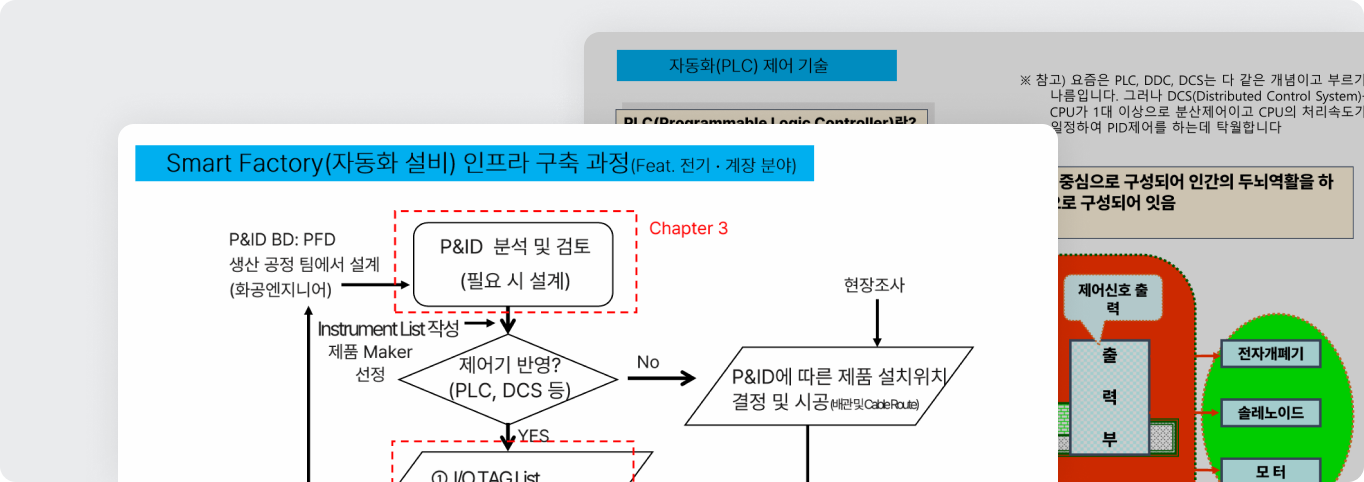 1. 기존 도면 분석을 통하여 단기간에 전기, 계장제어 설계 및 운영에 대한 기초 쌓기