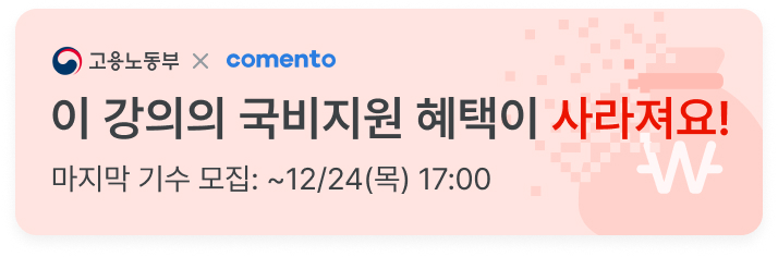 수강하시는 과정은 ‘K-디지털 기초 역량 훈련’으로 고용노동부의 국비 지원을 받는 과정입니다.