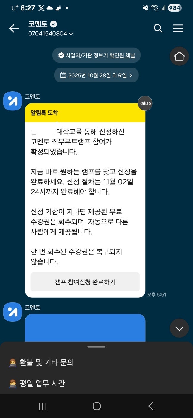 코멘토가 캠프진행을 할 수 없게 된 경우