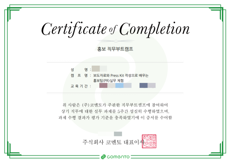 수료증을 토대로 이력서에 직무 관련 경험으로 작성했고 임원 면접시 경험에 대한 질문에 직무 관련한 관심이 많다는 것으로 어필 했고, 좋은 평가를 받을 수 있었어요.