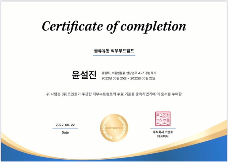 수료증을 토대로 이력서에 직무 관련 경험으로 작성했고 임원 면접시 경험에 대한 질문에 직무 관련한 관심이 많다는 것으로 어필 했고, 좋은 평가를 받을 수 있었어요.